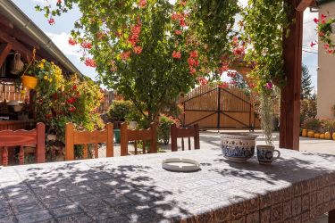 Camerele noastre sunt de: 2, 3 și 4 paturi, și terasa noastră este mereu plină cu flori și are 24 de locuri. Fiecare cameră are baie privată, doar apartamentul are baie comună. Sufrageria are o capacitate pentru 24 de persoane. Vă așteptăm cu drag în tot anul.